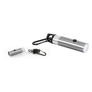 Lanterna em alumínio com 6 leds abridor de garrafas e mosquetão. Funcionamento a bateria.